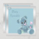 Elegante personalizado personalizada, Baby Sprinkle Fiesta invitaciones para la celebración de las mujeres. Una hermosa imagen impresa de un lindo oso de peluche azul con el ganado de un bebé y chupando un maniquí, impresa en un fondo verde azulado de bonito con un impresionante fondo de gradiente plateado, en la esquina superior izquierda es un corazón de amor verde azulado a juego. El reverso de esta tarjeta tiene las mismas imágenes impresas y suficiente espacio para los detalles del evento. Estas glamurosas, elegantes, elegantes y sofisticadas invitaciones están decoradas/impresas en ambos lados. Son modas, elegantes y románticas invitaciones. Perfecto para eventos de primavera / verano / otoño o invierno. Todo el texto es totalmente personalizable para satisfacer sus necesidades. Si necesitas ayuda para personalizar tu producto, por favor contacta conmigo a través de mi tienda y estaré encantado de ayudarte.