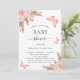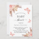 Para una moderna ducha tipo boho. Un fondo blanco en la parte delantera. Decorada con rosa de oro y flores rosadas, rosas, pampas y mariposas. Personalice y agregue un nombre y detalles del fiesta. Atrás: fondo rosado y mariposa.