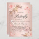 Para una moderna ducha tipo boho. Fondo subió de gradiente dorado. Decorada con rosa de oro y flores rosadas, rosas, pampas y mariposas. Personalice y agregue un nombre y detalles del fiesta.