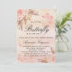 Para una moderna ducha tipo boho. Un fondo de color oro rosa, color rosa oscuro, fino y de aspecto metálico. Decorada con rosa de oro y flores rosadas, rosas, pampas y mariposas. Personalice y agregue un nombre y detalles del fiesta.