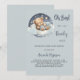Para una ducha de bebé celebrando a un niño. Un fondo gris azul. Un lindo oso de peluche durmiendo en una nube. Personalice y agregue el nombre de la futura madre y los detalles del fiesta. El nombre y el texto: Oh Boy! y Bearly están escritos con una escritura a mano.