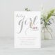 Una niña durmiente ducha de bebé de texto elegante invitación a la tipografía mínima gris gris con el texto niña de color blanco con fondo gris claro y una niña con ropa rosa con un poco de azul durmiendo en una nube y la luna creciente amarilla. Este moderno y elegante diseño minimalista personalizado de plantilla es completamente personalizable. Puede cambiar el color de fondo. Algunos elementos de Trina Clark.