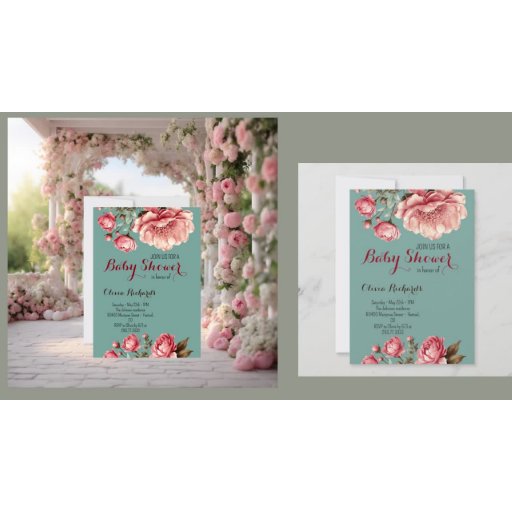 Invitación Bebé en Baby Shower Delicado de Flor Rosa