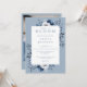 Esta elegante "baby in bloom" polvorienta invitación a la ducha de bebé floral azul puede ser personalizada con su información en tipografía moderna y una foto especial al revés. Diseñado por Thisisnotme©