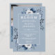 Esta elegante "baby in bloom" polvorienta invitación a la ducha de bebé floral azul puede ser personalizada con su información en tipografía moderna y una foto especial al revés. Diseñado por Thisisnotme©