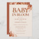 Bebé en flor otoño, invitación a la ducha de bebé con tipografía elegante de terracota y follaje rústico floral. Diseñado por Thisisnotme©