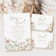 ¡Bienvenido al mundo con esta encantadora invitación a la ducha de bebé! Nuestro bebé dulce en flor de flores silvestres tiene un hermoso motivo floral acuático rodeado de mariposas floridas y detalles extravagantes. Perfecto para una ducha de bebé boho, esta invitación le dará un toque de belleza y encanto a esta ocasión especial.