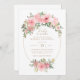 Celebra tu pequeña en el camino con esta hermosa invitación floral rosa y dorada.