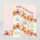 Bebé en la invitación de Baby Shower de Bloom Floral Garden. El diseño se titula "Baby in Bloom" (Bebé en Bloom) y la plantilla está configurada para que usted añada el texto de la invitación de su personalizado. Este diseño floral de bonito tiene arcos de oro modernos y guirnaldas de flores y follaje en melocotones y ensaladas de fruta crema en tonos rosa naranja y amarillo. Perfecto para una ducha de primavera o verano, una ducha de bebé en el jardín o un brunch para bebés.