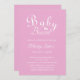 Ideal para la ducha de bebé en primavera o verano, este diseño presenta un fondo rosa con un fondo repleto de texto blanco. Actualice fácilmente el texto editable de su ducha de bebé. Diseño de Ms_Jade. © Ms_Jade