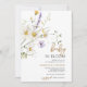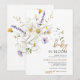 Esta tendencia de invitaciones para Baby Boom cuenta con flores silvestres violetas pintadas a la acuarela, manzanilla rústica, hojas verdes y ramitas.