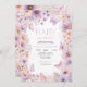 Bebé en flor | Una impresionante invitación de Baby Shower con flores silvestres y mariposas en color púrpura y rosa. Un diseño perfecto para el evento de ducha de bebé de las niñas.