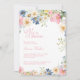 Invite a sus huéspedes con esta invitación colorida, moderna y elegante a la ducha de bebé, con ilustracion de flores silvestres acuáticas y letra manuscrita. En sólo unos pocos clics, personalizarlo con sus propios detalles y preferencias. Disponible en diferentes colores, en impresión y descarga.