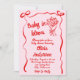 Si busca una elegante invitación única y fácil personalizable para una ducha de bebé, esto es perfecto para usted. Como ves, se trata de un guión retro escrito a mano y un ramo de flores dibujado a mano. Que incluye un borde de marco de cinta dibujado a mano. Todo en rojo magenta sobre fondo rosa pálido. Muy fácil de personalizar y uso. Así que agarrarlo y hacer que sus invitaciones estén muy comprometidas.