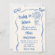 Si busca una elegante invitación única y fácil personalizable para una ducha de bebé, esto es perfecto para usted. Como ves, se trata de un guión retro escrito a mano y un ramo de flores dibujado a mano. Que incluye un borde de marco de cinta dibujado a mano. Todo en azul sobre fondo cremoso. Muy fácil de personalizar y uso. Así que agarrarlo y hacer que sus invitaciones estén muy comprometidas.