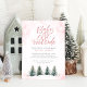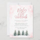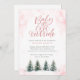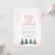 Este Baby Shower Invitation incluye un ilustracion acuático de pinos y un fondo rosado de copos de nieve, con el popular dicho "Baby it's Cold Outside". Personalízalo con los detalles de tu evento. ¡Una bonita invitación, perfecta para tu evento!