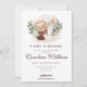 Esta invitación a la ducha de bebé con temática de café "Baby is Brewing" presenta un diseño encantador con una botella de bebé y una taza de café rodeada de exuberantes hojas verdes. La combinación de tonos suaves y tierra y elementos lúdicos crea un ambiente cálido y acogedor, perfecto para una celebración única y acogedora de una ducha de bebé. La vegetación aporta un toque natural, mientras que la temática del café aporta un toque divertido y personal a los padres que disfrutan de su elaboración diaria.
