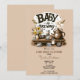 Invitación Bebé está preparando tetera de té rústica de duraz