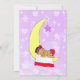 Un dulce bebé de piel más oscura y cabello oscuro que podría representar a un bebé hispano o afroamericano. La parte delantera tiene un bebé durmiendo en una nube con un fondo morado. La parte trasera tiene al bebé durmiendo en la luna.