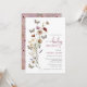 Invitación a un brunch con flores de boho rosado. Invite a los huéspedes a una encantadora y elegante celebración con esta invitación a un brunch con flores silvestres y mariposas, diseñada para establecer el tono perfecto para su reunión especial. La parte frontal presenta un guión azul polvoriento, bellamente enmarcado por delicadas mariposas, flores silvestres vintage, hierbas secas y follaje verde salado suave, creando una estética de boho atemporal. Los cálidos tonos tierra, tostados, marrón, óxido, terracota, naranja quemado y verde sabio mutado aportan un toque de diseño sin esfuerzo, por lo que este diseño es perfecto para un brunch de primavera, verano, otoño o invierno. La parte trasera muestra un patrón de coordinación en un fondo rosa bonito, asegurando un aspecto cohesivo y pulido. Ya sea que esté organizando una reunión íntima o un evento elegante, esta invitación captura bellamente la esencia de un alegre y sincero brunch de la ducha bebé!