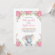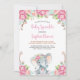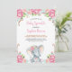 Invitación Bebé Floral Rosa Cute Elephant Chica Baby Shower