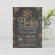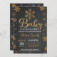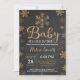 Bebé, está frío fuera de la Invitación de Invitación a Baby Shower.Invitación del Chica Baby Shower. Invitación Baby Shower para vacaciones de invierno. Copos de nieve dorados y blancos. Fondo del tablero.