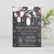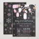 Bebé es frío fuera de Invitación a Baby Shower Mason Jar. Invitación a Baby Shower de chico o Chica. Copos de nieve rosas y blancas. Frasco de conservas. Flores florales. Luces de cadena. Fondo del tablero. Blanco y negro. Para una mayor personalización, haga clic en el botón "Personalizar" y utilice nuestra herramienta de diseño para modificar esta plantilla.
