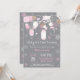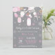 Bebé es frío fuera de Invitación a Baby Shower Mason Jar. Invitación a Baby Shower de chico o Chica. Copos de nieve rosas y blancas. Frasco de conservas. Flores florales. Luces de cadena. Fondo gris. Para una mayor personalización, haga clic en el botón "Personalizar" y utilice nuestra herramienta de diseño para modificar esta plantilla.