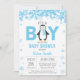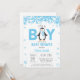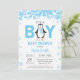 Bebé, es frío fuera de la invitación de Baby Shower del Niño Pingüino. Beba su frío fuera de la invitación de Baby Shower. Copo de nieve azul y blanco. Chico Invitación de Baby Shower. Invitación Baby Shower de feriado de invierno. Fondo blanco. Para una mayor personalización, haga clic en el botón "Personalizar" y utilice nuestra herramienta de diseño para modificar esta plantilla.