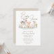 Esta personalizado con ducha de bebé está decorada con un sano tema de casa de campo. La imagen muestra un grupo de animales de granja que se relajan en el césped. Entre los animales hay una vaca, un pollo, un ganso, un cerdo y una cabra. El título "Baby Shower" está impreso en un elegante tipo de letra sobre los animales.
