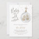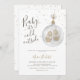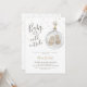 "Bebé, hace frío afuera" Celebra a la futura madre con esta invitación a bañarse en una ducha de bebé de invierno neutral en cuanto a género, que incluye un minimalista ilustracion acuarela de un adorno de vidrio con zapatos para bebés dentro y pequeños copos de nieve.
