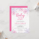 Bebé, hace frío fuera del tema del invierno Invitación a la ducha bebé para niñas. Esta invitación es perfecta para las duchas de invierno. El esquema de color es muy ondulado en rosa y morado con un diseño de texto dorado/purpurina. Una invitación a la ducha de bebé rosa y morado con bonitos copos de nieve. Ilustracion digital de Kristine Lee. Para obtener más información, visite www.kristineleedesigns.com
