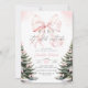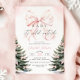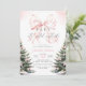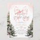 Invitación Chica en Baby Shower "Baby It's Cold Outside" (Bebé, hace frío fuera) con pinos y detalles en el arco rosa.