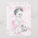 Adorable princesa rosa vintage Toile baby girl ducha invitación. Esta tierna invitación a la ducha de bebé con toile rosa se personaliza fácilmente para tu evento añadiendo detalles de tu evento, estilo de fuente, tamaño de fuente y color, y redacción.