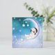 Adorables invitaciones de fiesta de bebé niña durmiendo con azul teal y luna morada. Esta dulce invitación de baby shower de color lavanda púrpura se personaliza fácilmente para su evento agregando los detalles del evento, estilo de fuente, tamaño y color de fuente, y redacción.