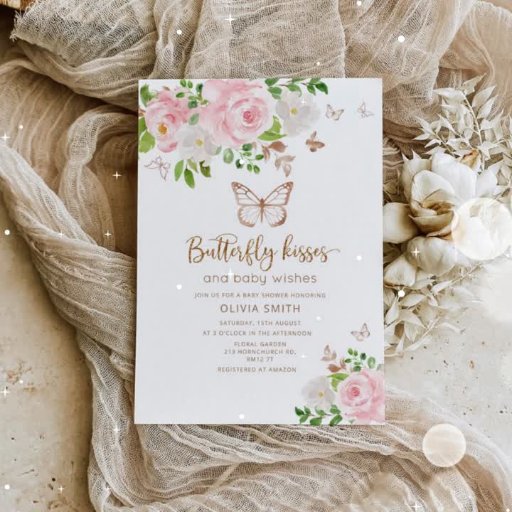 Invitación Bebé mariposa en Bloom Rubor ducha de bebé de oro