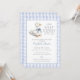 Esta encantadora invitación de baby shower presenta un pequeño ganso adorable y un fondo de cuadros azules. Diseñado por Thisisnotme©