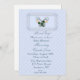 Invitación para niños, con pines de pañales azules con rosas en marco de encaje con arcos sobre fondo de manta azul. Las invitaciones son fáciles de personalizar y se completan con sobres y la elección de papel. Gráficos ©http://www.delightful-doodles.com/