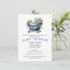 Invitación Bebé Niño Cuna Azul Ducha Floral