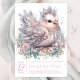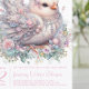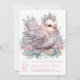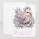 Invitación de bebé pollito con joyas con un hermoso pollito adornado con joyas y tiara sobre un fondo floral pastel. Esta invitación de fiesta de bienvenida de bebé niña se personaliza fácilmente con su texto y puede cambiar el color del fondo en la parte delantera y trasera y el color del texto.