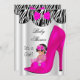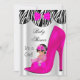 Bebé lindo con zapato de tacón alto, Baby Shower Baby Girl Animal Hot Pink, Zebra White Print. Invitación de Bow Ribbon, recién nacido adorable, niña Gorgeo