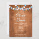 Esta bonito, bautismo rústico, bautizo o primera invitación a la comunión, presenta un fondo rústico de madera vintage, revestimientos azules y blancos y una preciosa caligrafía de escritura con una sombra de gota azul. En el reverso, filas de revestimientos azules y blancos sobre un fondo rústico de madera vintage.