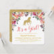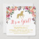 Invitaciones para baby shower de adorable unicornio con una exhibición de flores en acuarela, un unicornio con brillo dorado y una plantilla moderna de baby shower.