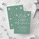 Invitación Bebé verde con copo de nieve hace frío fuera de Ba