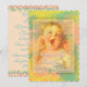 Un bonito cuadro vintage y elegante de un bonito bebé de bostezo, con mejillas rosadas y cerraduras doradas, realizado en un pastel de aceite y acuarela. En colores ricos pero delicados de rosa, verde, crema y oro. Algunos diseños presentan un recorte de aspecto de cinta satinada. Suave y sofisticada. Parte de mi colección de "Esperando el primer aliento del bebé" para la ducha de bebé.