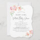 Invitación Bebé virtual, ducha, acuarela rosa con flores
