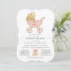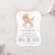 Cuando todos no puedan estar juntos, celebrar a la futura madre desde una larga distancia con una ducha virtual en línea. Esta invitación a la ducha de bebé rosa tiene una acuarela color rosa pastel y dorado de un carro de bebé retro. Puedes personalizar el texto del carro (nombre del bebé, ¡es un chica!) o dejar en blanco. "Virtual Shower" está escrito en un guión elegante. Una pequeña acuarela rosa y dorada en la parte inferior de la invitación separa los bloques de texto de los detalles del fiesta. Puede personalizar fácilmente con los detalles de la ducha en línea, incluyendo un enlace de acceso en línea, información del registro, dónde enviar tarjetas y regalos o la opción de abrir en línea y enviar más tarde, y dónde obtener más información.