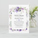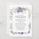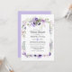 Invitación floral a larga distancia virtual para bebés o duchas de novias en tonos pastel de violeta y violeta con flores anemónicas, eucalipto, ranunculus y suculentos.