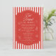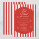 Elegante Eat Drink & Be Merry Corporate Navidades Fiesta Company Holiday Party Invitation presenta elementos sencillos y extravagantes de Navidades blancos sobre un fondo de rayas rojas y blancas con el texto "Eat Drink & Be Merry" en elegante tipografía de escritura de caligrafía blanca. Elegante, moderno y moda para su fiesta de vacaciones corporativa. Creado por Evco Studio www.zazzle.com/store/evcostudio