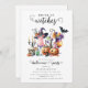 "Únete a nosotros para una festividad de Halloween con nuestra invitación "Bebe, brujas!". Con una plantilla moderna que es fácil de personalizar, esta invitación está adornada con imágenes de acuarela de cócteles espeluznantes, tiros, gorras de brujas, murciélagos, calabazas, cráneos y velas. Es la manera perfecta de reunir a tus novias para pasarla muy bien esta Halloween."